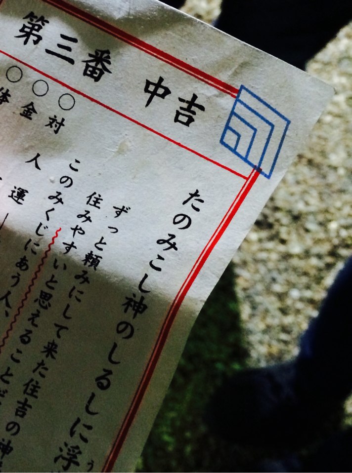 中吉くらいが一番好きです。大吉!って出ると嬉しいけど、今年一年の全ての運を使った気になるから。